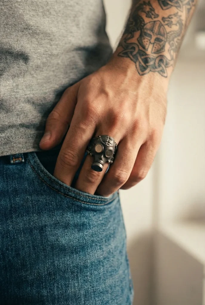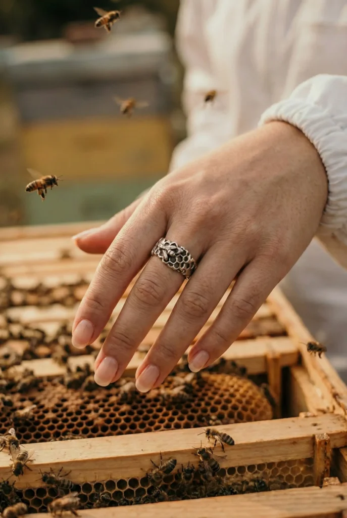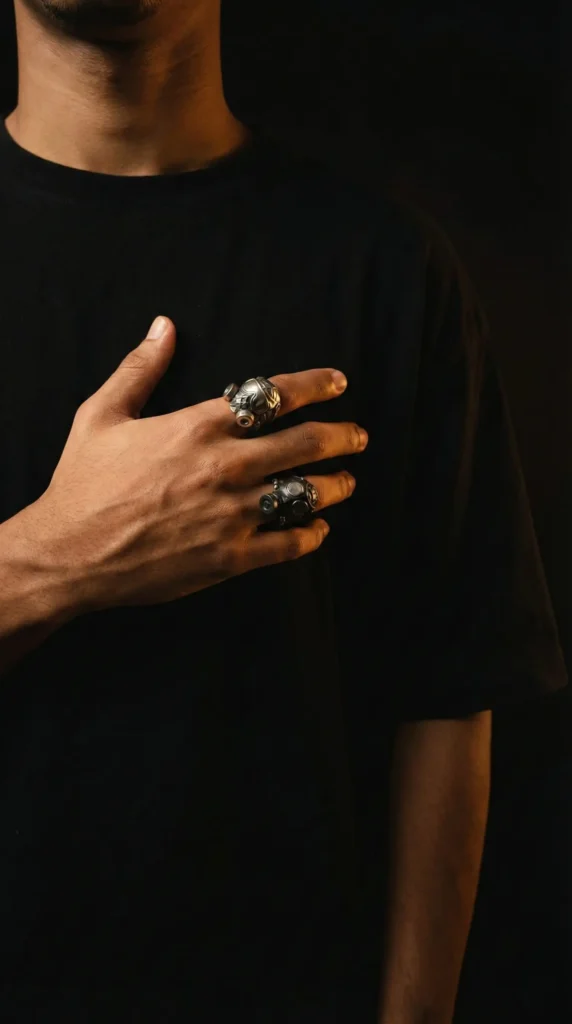 Mis diseños personales no buscan “gustar a todos”. Son anillos escultóricos, diferentes a lo ordinario, guiados por mi estética y mis referencias. Piezas con volumen, carácter y detalle, hechas para sentirse tanto como para verse.