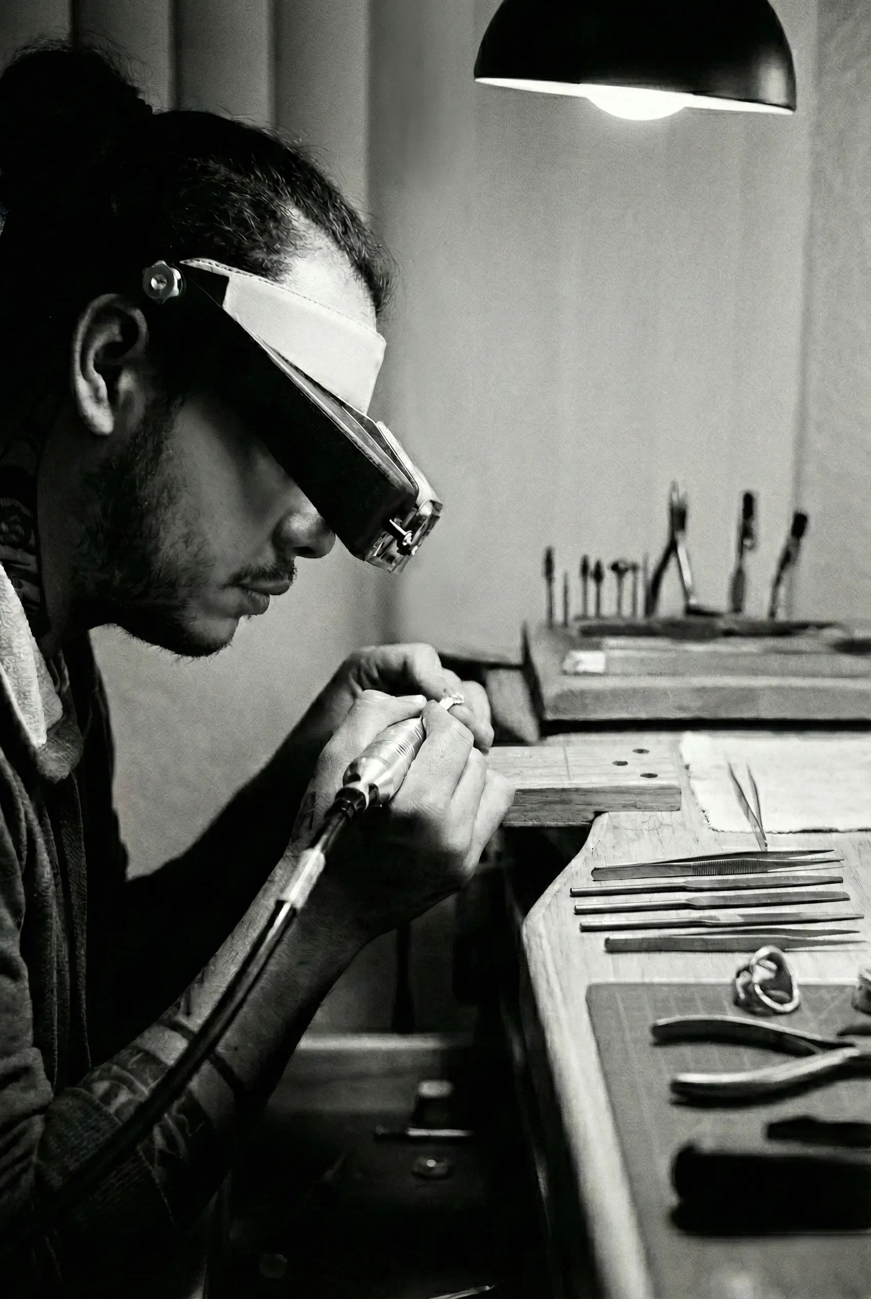 Piezas en plata y oro, diseñadas con precisión y terminadas a mano.